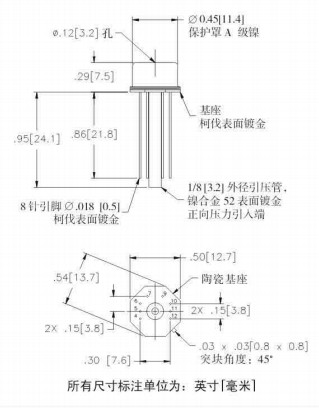 产品简介: 27型传感器是经过温度补偿,采用TO-8金属结构封装的硅压阻式传感器,具有温度使用范围广,性能优良,长期稳定性好的特点。该产品作为表压类压力传感器,量程范围从0-15PSI 至 0-250 PSI。通过激光刻蚀的电阻用于调节差动放大器的增益来校正传感器的压力灵敏度变化,从而在高电平输出时具有良好的互换性,互换误差仅为±1%℃